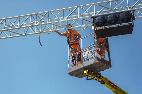 Wir bieten umfassende Lösungen für die intelligente Verkehrssteuerung. Dazu gehört die Installation von LED-Wechselverkehrszeichen, Lichtsignalanlagen und Sensoren. Diese Systeme ermöglichen eine dynamische Anpassung der Verkehrsführung je nach Bedarf und Verkehrsaufkommen.