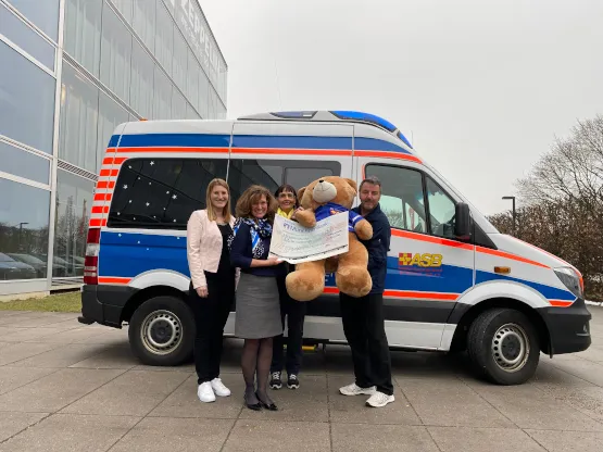 Inzwischen hat die Spendenaktion der Auszubildenden Tradition: Kurz vor Jahresende sammeln sie Geld für den guten Zweck. Sie wählen eine Organisation oder Einrichtung aus, kümmern sich um die Abwicklung sowie die interne Kommunikation. Insgesamt 3400 Euro kamen im vergangenen Jahr für den ASB-Wünschewagen zusammen. Der Großteil der Summe setzt sich aus Spenden von Kolleginnen und Kollegen der Zeppelin Rental zusammen. Zeppelin Rental legte nach und rundete die Spendensumme auf.