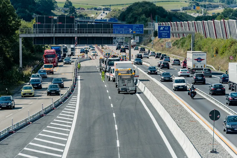 Durchschnittlich rund 147.000 Fahrzeuge befahren das Autobahndreieck Leonberg täglich. Es zählt damit zu einem der am stärksten beanspruchten und mit seinen zahlreichen Verflechtungen, Auf- und Abfahrten gleichzeitig zu einem der komplexesten Autobahnbereiche Deutschlands. Im Auftrag der Bundesregierung mussten nun die Beläge der beiden Hauptfahrbahnen des Dreiecks Leonberg sowie zwischen den Anschlussstellen Leonberg/Ost und Heimsheim auf einer Gesamtlänge von 12,2 Kilometern saniert werden. Die Arbeiten erfolgten unterteilt in mehrere Abschnitte.