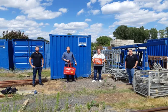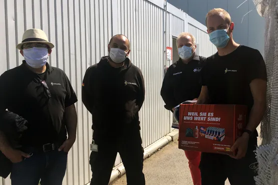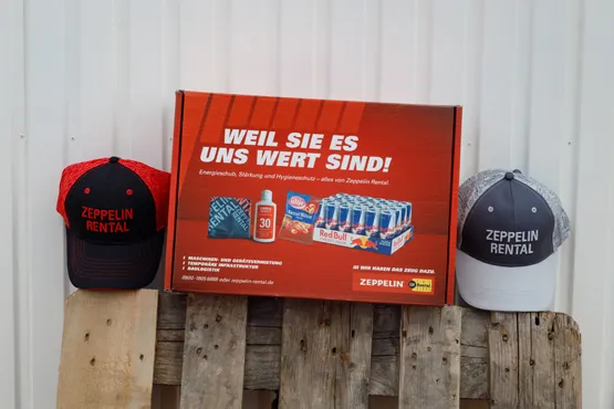 Doch wir wären nicht Zeppelin Rental, wenn wir nicht eine alternative und der neuen Situation angepasste Lösung für die Baustellentour gefunden hätten. So wurden die Erfrischungen und kleinen Überraschungen in Kartons verpackt und an unsere Kolleginnen und Kollegen im Außendienst verteilt. Sobald Baustellenbesuche unter Einhaltung der Hygiene- und Abstandsregeln wieder aufgenommen werden durften, vereinbarten unsere Kolleginnen und Kollegen Termine, um einem Ansprechpartner auf der Baustelle stellvertretend für die ganze Mannschaft unser Paket zu überreichen.