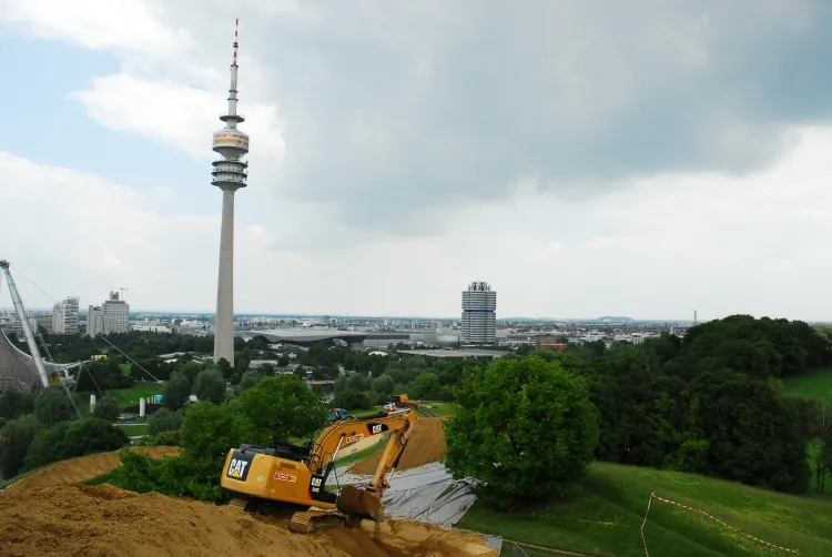So stellen die Münchner Mietstationen unter der Leitung von Heiko Schenk für die Gestaltung des Motocross-Rennkurses im Olympiastadion einen Kettenbagger CAT 323 EL, einen Mobilbagger M 315 D, die Radlader CAT 950 K und 950 H, den Deltalader Terex PT-30, zwei Planierraupen CAT DK4, eine Teleskopbühne ZT28.23D, die handgeführte Walze DVH 655 sowie eine Flutlichtanlage, Rüttelplatten und mobile Tankanlagen für Materialtransport, Erdbewegung und Verdichtung zur Verfügung. Außerdem im Einsatz: Gabel- und Teleskopstapler sowie Hubwagen für die Konstruktion der aufwendigen Parcours aus Holz und Gerüsten in Olympia- und Eishalle, Kompressoren und Fahrzeuge für den schnellen Personen- und Materialtransport auf dem weitläufigen Gelände. Insgesamt 60 Mietgeräte sowie vier Kilometer Zäune, über 2.000 Meter Absperrgitter und 100 Meter Bühnengitter sind über den gesamten Olympiapark verteilt.