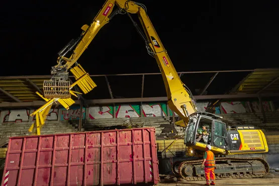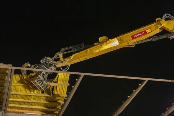 Benötigt wurden zwei Kettenbagger CAT 340 F mit ultralangem Abbruchausleger. Sie zeichnen sich unter anderem durch eine geräuscharme, hydraulisch kippbare ROPS-Komfortkabine mit Klimaautomatik und sehr guter Rundumsicht aus. Zusätzlich sind sie mit einem integrierten Dieselpartikelfilter ausgestattet und erfüllen die Abgasstufe EU IV. Da das Unternehmen von Geschäftsführer Volker Hartlepp selbst keine Maschinen in der benötigten Größe im Fuhrpark vorhält, kam Zeppelin Rental ins Spiel. Das Unternehmen, das Leistungen im Bereich Vermietung von Maschinen und Geräten, temporäre Infrastruktur und Baulogistik anbietet, kümmerte sich um die termingerechte Bereitstellung der beiden Bagger mit Abbruchsortiergreifern.