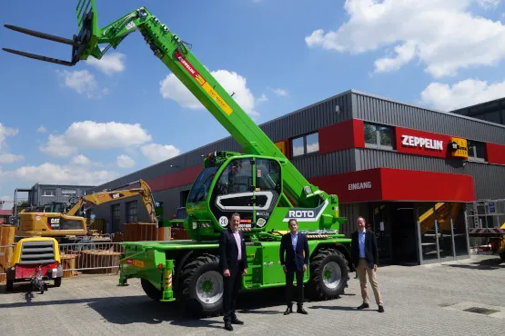Garching bei München. „Wir schätzen diese Partnerschaft sehr, die sich seit 18 Jahren konstant positiv entwickelt hat. Zeppelin Rental ist heute der größte Abnehmer unserer Produkte“, freut sich Henrich Clewing, Geschäftsführer der Merlo Deutschland GmbH. Das 1.000ste Exemplar, ein Merlo 50.21 Roto der neuesten Generation, wurde von Clewing feierlich auf dem Gelände der Zeppelin Rental-Mietstation Garching an Geschäftsführer Peter Schrader und Martin Sebestyén, Bereichsleiter Vermietung und Flottenmanagement bei Zeppelin Rental übergeben.