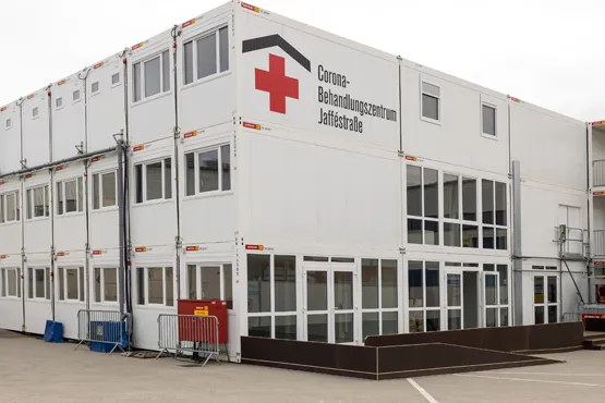 Unter geringerem Zeitdruck plante und montierte Zeppelin Rental zudem eine weitere, kleinere Containeranlage. Das hochwertige Gebäude lässt die Bauweise nicht erkennen und steht den Angehörigen von Patienten zur Einholung von Informationen und seelsorgerischen Beistand zur Verfügung.