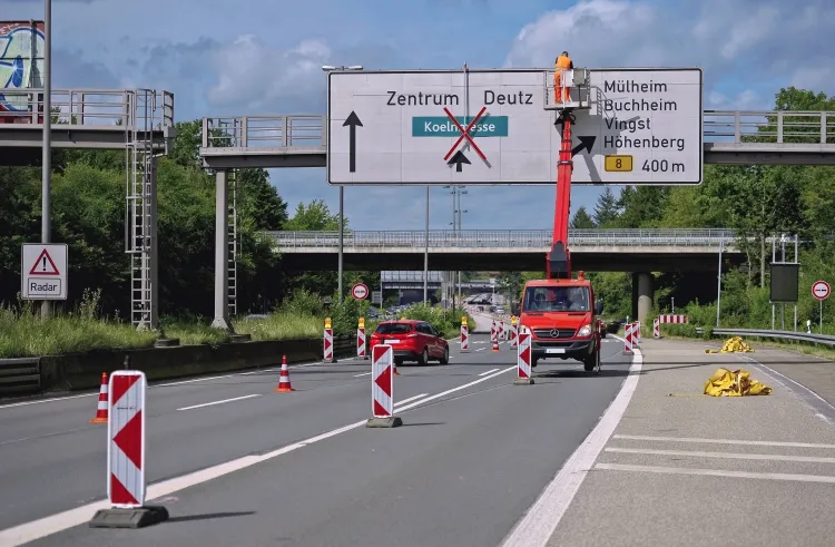 Die Verkehrstechnik von Zeppelin Rental ist unter anderem nötig, um Spuren zu verengen. In beiden Richtungen stehen im Tunnel Kalk während des gesamten Bauvorhabens statt drei nun nur noch zwei Fahrstreifen zur Verfügung. Zusätzlich sperrten Michael Spengler und sein Team die Zufahrten auf die Stadtautobahn in Fahrtrichtung stadteinwärts im Kreuz Köln-Ost und vom Buchheimer Ring. Dazu mussten unter anderem zahlreiche Auskreuzungen vorgenommen werden. Viele der Arbeiten konnten außerdem nur im Schutz nächtlicher Teilsperrungen des Straßenverkehrs erfolgen.