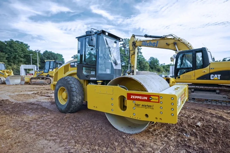 Aus genau diesem Grund hatte die im fränkischen Klingenberg ansässige und mit dem Erdbau beauftragte Michel Bau GmbH 25 Maschinen eingeplant. Denn im Fall eines technischen Defekts musste Ersatz vor Ort sein. Dabei griff die Bauleitung auch auf Mietgeräte von Zeppelin Rental zurück: Ein Walzenzug CAT CS 68 B unterstützte bei der Verdichtung.