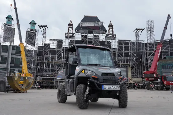 „Das Besondere bei dem Einsatz auf dem Parookaville ist die Dimension, in der wir hier arbeiten“, sagt Marcel Hoge, Projektleiter Events bei Zeppelin Rental. Nur ein paar Zahlen: 70 Utility Task Vehicles (UTV), 50 Geländestapler und 36 Roller waren während der Auf- und Abbauphase sowie während des Festivals im Einsatz. Ein besonderes Augenmerk wurde hier auch auf grüne Mietlösungen wie UTVs und Roller mit Elektroantrieb gerichtet. Ein spezieller Ladecontainer mit Solar-Panels sorgte für die passende Infrastruktur.