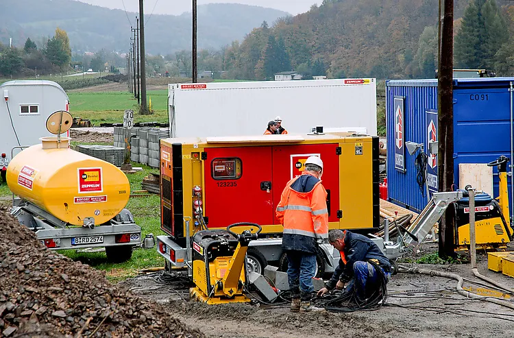 Gebraucht wurden die Kettenbagger CAT 319 DL und 308 DCR, ein Mobilbagger CAT M315 D, ein Radlader CAT 914 G – alle Baumaschinen ausgestattet mit verschiedenen Anbaugeräten –, zwei Rüttelplatten CR 7, ein Vibrationsstampfer SRV 620, zwei Kompressoren XAS 97 Dd, vier Flutlichtanlagen und zwei Stromerzeuger mit Leistungen von 10 bis 80 kVA sowie zwei Brauchwasser-Transportanhänger mit einem Fassungsvermögen von 3000 Litern. Stefan Hagedorn: „Aufgrund der großen Entfernung zwischen unserem Firmensitz und der Baustelle haben wir entschieden, nicht mit unseren eigenen Maschinen zu arbeiten, sondern am der Baustelle nächstgelegenen Standort in Hanau anzumieten. Denn bei Zeppelin Rental wissen wir um die hohe Qualität der Produkte und die gute Betreuung.“