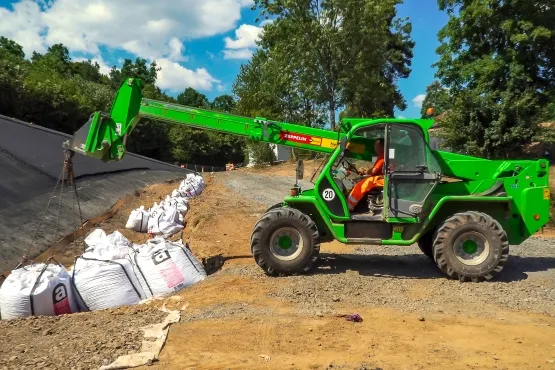 Regelmäßig verstärkt das Schweizer Unternehmen seinen eigenen Maschinenpark mit Mietgeräten von Zeppelin Rental. Denn je nach Lage und Dauer der Baustelle ist es wirtschaftlicher Equipment hinzu zu mieten. Das Areal um den Niddastausee wurde mit Bauzäunen und Schrankenschutzgittern von Zeppelin Rental großzügig abgesperrt, eine zweistöckige Containeranlage diente als Baubüro, der Kurzheckbagger CAT 321D L CR und ein Teleskopstapler halfen bei Hebe- und Transportarbeiten. Hinzu kamen eine Reihe von Baugeräten von Kompressoren über Stampfer und verschiedene Pumpen. „Bei dieser Art von Baustellen kommt es öfter mal vor, dass wir ein spezielles Anliegen haben“, erzählt Bandar Secchi. Dafür steht WALO mit Key Account Manager Christian Naujok ein direkter Ansprechpartner bei Zeppelin Rental zur Verfügung.