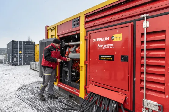 Um eine sichere und effiziente Nutzung der Anlage zu garantieren, gehört auch die Wartung der Technik zum Leistungsportfolio von Zeppelin Rental. Ein Großteil erfolgt bereits heute komplett digital: Dank einer integrierten Fernüberwachung ist es unter anderem möglich, die Spannung der Batterien, detaillierte Daten über den Zustand des Motors oder aber potenzielle Fehlermeldungen ortsunabhängig auszulesen. „Zudem schicken wir alle vier Wochen einen Techniker, der alles eingehend prüft. Bei der Anlage handelt es sich um eine Sicherheitsmaßnahme, die bestenfalls nicht benötigt wird. Wenn doch, dann kann sich der Kunde jedoch zu 100 Prozent auf die Technik verlassen“, betont Volker Deßel.