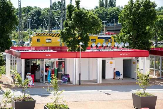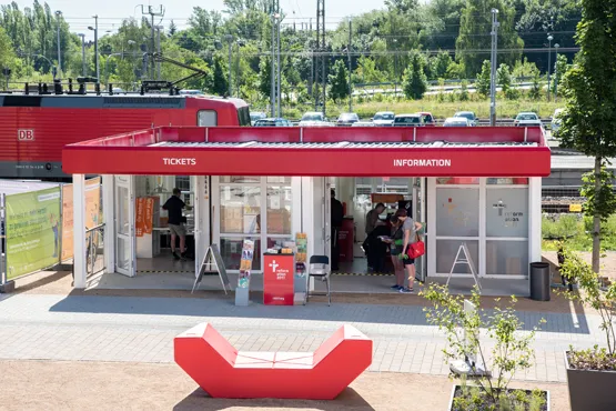 So sind die Besucherinformation, die Gepäckaufbewahrung, Fundbüro, Ticketverkäufe, ein Fahrradverleih, Sanitäreinrichtungen, Ausstellungen und Empfangsräumlichkeiten in Raumsystemen untergebracht. Der Projektverantwortliche Hans-Jürgen Schlotte und das Team aus dem Kompetenz-Center in Dresden unter der Leitung von Hans-Jürgen Walter montierten insgesamt 24 Raummodule an verschiedenen Orten der Stadt. So stehen die Module beispielsweise am Bahnhof und in der Altstadt. Die Raumsysteme wurden mit Glasfronten und insgesamt 120 laufenden Metern roter Attika ausgestattet. Dies gibt ihnen ein noch freundlicheres Erscheinungsbild und sorgte im Inneren für viel Licht und angenehme Wohlfühlatmosphäre. Zusätzlich verwendete Zeppelin Rental in den Flurmodulen einen rutschhemmenden Bodenbelag.
