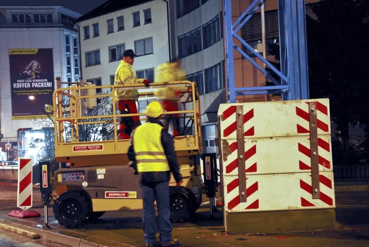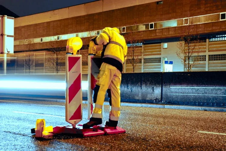 Einige Tage vor der eigentlichen Maßnahme ging es für die Verkehrssicherungsmonteure von Zeppelin Rental zunächst an die vorbereitende Stellung der Absperrtechnik. Aktiviert wurde sie erst in der Nacht der Traverseneinbringung. Vier fahrbare Absperrtafeln, rund 120 Meter Schrankenschutzgitter, 115 Leitbaken und 66 Verkehrsschilder – darunter über die Hälfte Sonderanfertigungen – waren im Einsatz und führten die Verkehrsteilnehmer über je zwei Umleitungsstrecken pro Richtung auf untergeordneten Straßen sicher an der Arbeitsstelle vorbei.