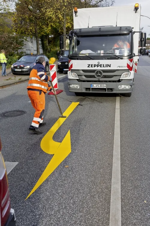 Um den Verkehr am Baufeld vorbei verschwenken, Spuren verengen und Rampen sperren zu können, brachten die Verkehrssicherungsmonteure insgesamt rund einen Kilometer Fahrbahnmarkierung sowie zahlreiche Richtungspfeile auf. Auch das Auskreuzen von Wegweisern gehörte zum Leistungsspektrum.