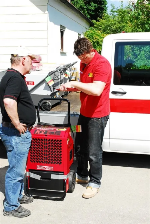 Mit Hochdruck werden dazu gerade aus dem gesamten Bundesgebiet verfügbare Geräte zusammengezogen und in ausgewählten Mietstationen gebündelt. Die ersten Geräte wurden bereits gestern ausgeliefert. Sie gingen in den oberbayerischen Landkreis Erding, wo das Wasser bereits zurückgegangen ist und nun die Keller getrocknet werden.