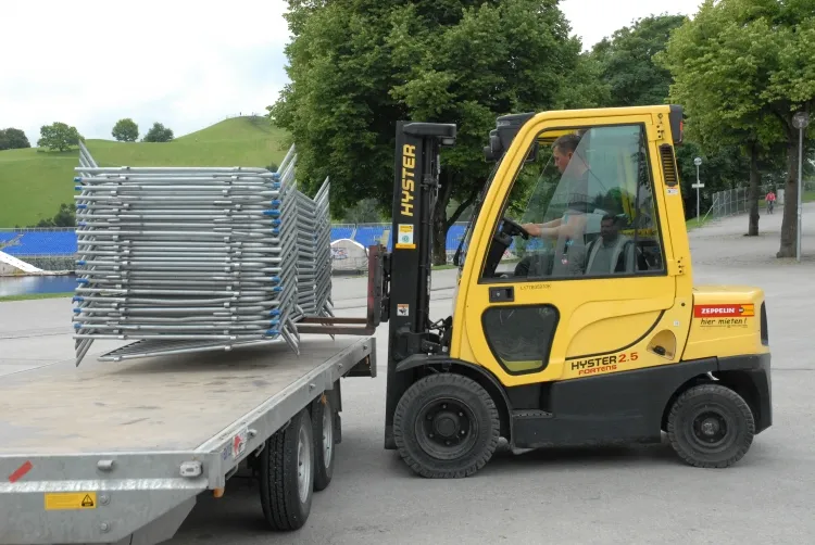 Für den Auf- und Abbau eines jeden Laufes müssen in kürzester Zeit große Materialmengen bewegt werden. Dazu gehören Gitter und Zäune für die Kennzeichnung der rund sechs Kilometer langen Laufstrecke. Um Zahlen zu nennen: In München handelte es sich um knapp 2.000 Stück, die im Olympiapark aufzustellen und wieder aufzuräumen waren. Sie wurden in LKW zu einem zentralen Sammelort gebracht, wo die Dieselstapler mit Tragfähigkeiten von 2,5 bis 4,5 Tonnen von Zeppelin Rental zum Einsatz kamen.