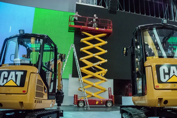 Die Gelenk-Teleskopbühnen von Zeppelin Rental wurden genau wie die batteriebetriebenen Scherenarbeitsbühnen in München für verschiedenste Arbeiten in der Höhe eingesetzt. Dazu gehörten der Aufbau und die Installation des Messe-Highlights, einer 388 Quadratmeter großen LED-Videowand bestehend aus 912 einzelnen LED-Screens, die Montage von Deckenleuchten und Segeln, Werbebannern, eines 14 Meter hohen Turms im Freigelände und vieles mehr. Trotz der starken Beanspruchung der Geräte und des herrschenden Termindrucks konnten alle Arbeiten dank der Zuverlässigkeit der Mietmaschinen ohne jegliche Ausfälle fristgerecht fertiggestellt werden.