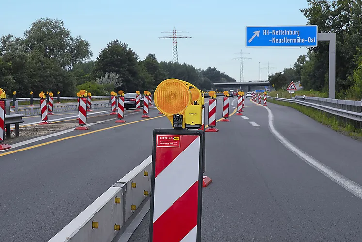 Die Herausforderung: Der Verkehr muss provisorisch unter Erhalt beider Spuren je Richtung an der Baustelle auf der Nordseite der Autobahn vorbeigeführt werden. Zeppelin Rental hat dafür nicht nur die erforderlichen Produkte wie Verkehrszeichen, Verkehrslenkungstafeln oder transportable Schutzeinrichtungen in seinem Mietprogramm, sondern verfügt auch über umfassendes Know-how in diesem Bereich und bietet alle nötigen Dienst- und Serviceleistungen an.