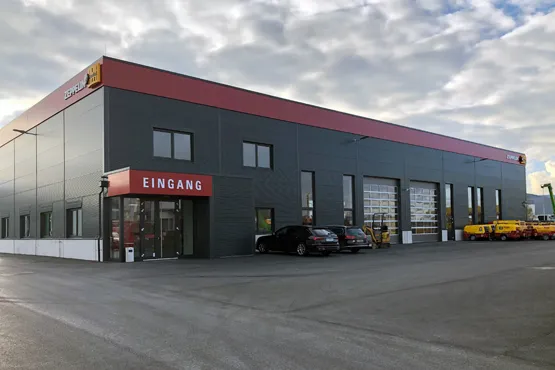 Neben der perfekt auf die Bedürfnisse der Miete ausgelegten Arbeitsausstattung wie einem Schwenkkran, einer im Boden eingelassenen Hebebühne, Ladesäulen für elektrisch betriebene Arbeitsbühnen und Druckluft am Arbeitsplatz hat auch der Bereich Elektro & Energie Einzug gefunden. Im Außenbereich des 8.500 m² großen Grundstücks finden neben Baumaschinen und -geräten, Arbeitsbühnen und Aufzügen auch Stromverteiler und Baulogistikequipment Platz.