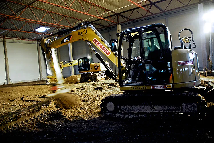 In Hessen sind seit rund einem halben Jahr sieben Mitarbeiter von KAFRIL Bau vor Ort. Weitere zwei Monate soll es dauern, bis das Logistikzentrum fertiggestellt ist. Während der Erdbau mit Eigentumsgeräten ausgeführt wurde, kamen die Mietmaschinen von Zeppelin Rental nach dem Hallenbau zum Einsatz. Der CAT M313 D sowie der CAT 308 ECR und der Radlader CAT 906 H2 werden rund drei Monate lang gebraucht, der Walzenzug CAT CS433 zur Verdichtung etwa vier Wochen.