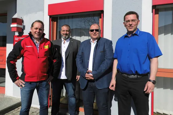 Auf Bild 2 von links: Kundenberater Markus Wolf (Zeppelin Rental), Thomas Nitschke (Geschäftsführender Gesellschafter NT Hafenspedition GmbH), Leiter des Kompetenz-Centers Lothar Meschkotat (Zeppelin Rental), Kai Götschel (Geschäftsführer NT Hafenspedition GmbH)