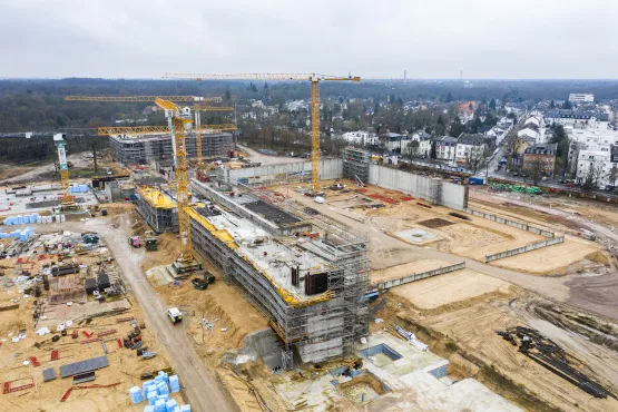 „The Spin“ am Güterplatz oder „Grand Central“ als neuer Firmensitz der DB Netz AG: Groß & Partner, GP Con und Zeppelin Rental arbeiten bereits bei mehreren Prestigeprojekten in Frankfurt erfolgreich zusammen. „Auch diesmal hat GP Con wieder das Vertrauen in uns gesetzt und uns mit der gesamten Elektro-Baustelleneinrichtung beauftragt. Zeppelin Rental ist stolz darauf, den Bau der Fußballschmiede des neuen DFB und seiner Akademie mit zu unterstützen“, betont Wolfgang Müller, der bei Zeppelin Rental für den Vertrieb des Bereichs Elektro und Energie in Frankfurt-Mörfelden verantwortlich zeichnet. So stellt Zeppelin Rental die gesamte temporäre Baustrom-Infrastruktur, von der eigens aufgestellten Transformatorenstation bis hin zu den Endverteilern zur Verfügung. Während der Roh- und Ausbauarbeiten des DFB und seiner Akademie befinden sich mittlerweile fünf Krane auf dem Baufeld an der Schwarzwaldstraße, sowie mehrere Containeranlagen, deren Stromversorgung für einen reibungslosen Bauablauf gesichert sein muss. Für die richtige Dimensionierung der Baustrom-Infrastruktur hat das Elektrofachpersonal von Zeppelin Rental die Leistungsaufnahme aller Verbraucher ermittelt, Kabelquerschnitte und Leitungslängen berechnet und ein umfassendes, auf die Großbaustelle angepasstes Konzept zur Baustromversorgung erstellt, stets im Hinblick auf die Aspekte Wirtschaftlichkeit und Nachhaltigkeit.