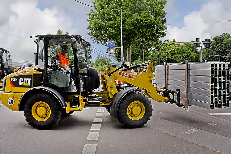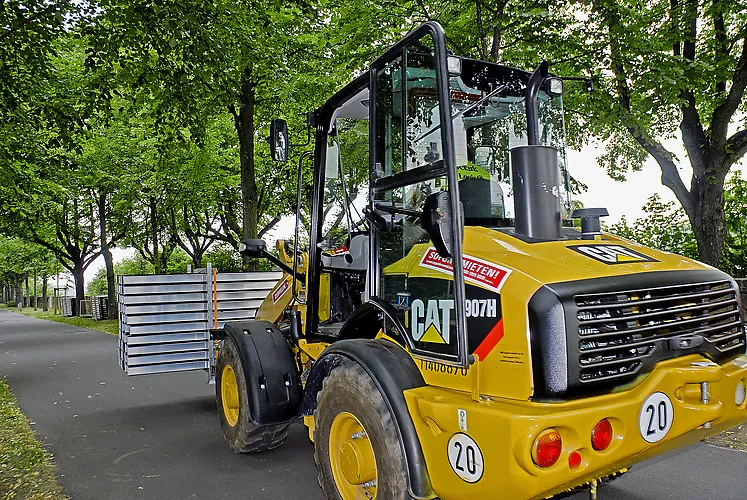Die Schutzwände und -tore lagern in acht Depots, die in der Stadt Köln verteilt sind. Sowohl bei der Übung als auch bei tatsächlichem Hochwasser transportieren LKWs sie an sechs verschiedene Entladestellen, wo sie abgeladen und an ihren Einsatzort gebracht werden müssen. Dafür mietet Bernhard Philipps seit rund vier Jahren bei Zeppelin Rental die passenden Maschinen an. „Zu Beginn unserer Kundenbeziehung hat die Mietstation in Köln-Porz uns ausführlich beraten. Wir konnten testen, welche Maschinen sich für den Einsatz am besten eignen und haben so unsere Wahl getroffen“, erzählt Bernhard Philipps.