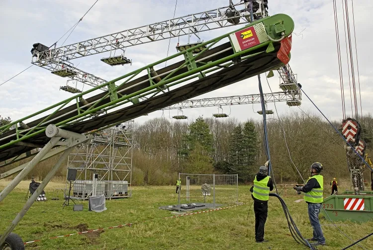 Für dessen Aufbau wandte sich der Westdeutsche Rundfunk an die Mietstation von Zeppelin Rental in Neuss. Gebraucht wurden zwei Minibagger samt Baumaschinenführer, zwei Förderbänder und zwei Schuttcontainer. Kundenberater Markus Kampfrath empfahl die Kurzheckbagger CAT 303.5D aus dem Mietpark und organisierte Förderbänder in der gewünschten Länge sowie Schuttcontainer. Die beiden Mietstationstechniker Metodi Ivanov und Klaus-Peter Franzen erklärten sich bereit, die Minibagger zu bedienen.