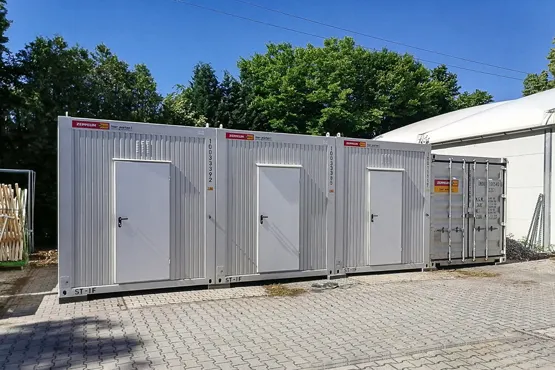 Bei einem ersten Besichtigungstermin wurde zunächst der individuelle Kundenbedarf geklärt. Dabei galt es, passende Raummodule als Ersatz für die Arbeits- und Lagerräume für die Mitarbeitenden während der Umbauphase zu finden. Schnell waren neun Container ausgemacht, für die sogleich genaue Positionsflächen festgelegt wurden. Die Anlieferung erfolgte schließlich zusammen mit dem Speditionsunternehmen. Den Aufbau und die Montage übernahm am Ende Zeppelin Rental, während die Anschlüsse kundenseitig verlegt wurden. Dank der frühzeitigen Planung des Projekts erfolgte die Lieferung der Raummodule just-in-time. Auch eine spontane Umplatzierung eines Containers war am Tag des Aufbaus noch möglich.