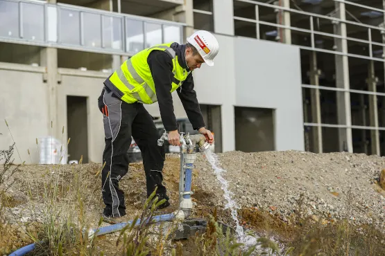 Die Bauwasserspezialisten von Zeppelin Rental erstellen im Vorfeld die Bedarfsanalyse und konzipieren darauf basierend ein maßgeschneidertes Konzept für die wasser- und abwasserseitige Baustelleneinrichtung von der Montage bis zum Rückbau. Dabei ist die Bauwasserinfrastruktur nicht für den Dauerbetrieb ausgelegt und als temporäre Installation zu sehen. „Nach Fertigstellung der Baumaßnahme erfolgt die Demontage und Entsorgung, auch die übernehmen wir gerne auf Wunsch des Kunden“, ergänzt Florian Beller.