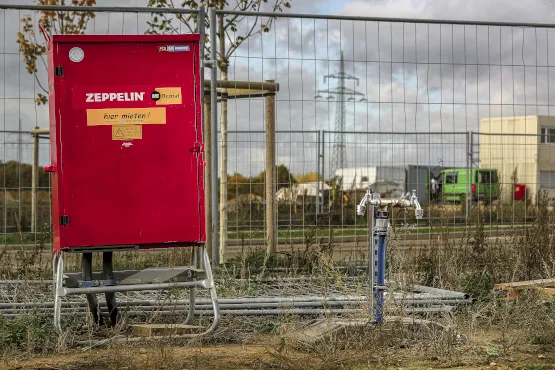 „Die bedarfsgerechte Planung und Ausführung sowohl der Bauwasserinfrastruktur als auch des temporären Stromnetzes ist bei diesem Projekt aufgrund der enormen Baufläche herausfordernd“, betont Timo Heitkamp, Bereichsleiter Elektro und Energie bei Zeppelin Rental. „Sowohl der Strom muss am Endverteilerkasten zuverlässig mit ausreichender Spannung bereitstehen, als auch das Bauwasser mit genügend Druck aus den Leitungen fließen.“