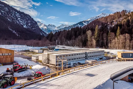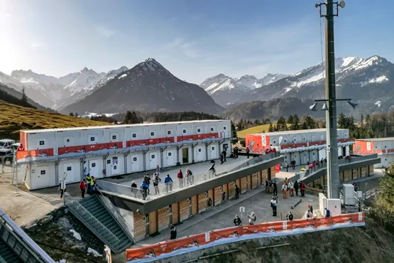 „Unsere festen Bauten im Bereich des Langlaufstadions und an den Skisprungschanzen richten sich nach dem ganzjährigen Bedarf des Sports und des Tourismus“, erklärt Florian Stern, Geschäftsführer der FIS Nordische Ski WM 2021 Oberstdorf/Allgäu GmbH. Für eine einmalig bis selten stattfindende Großveranstaltung – Oberstdorf trug seit 1987 insgesamt dreimal Nordische Ski-Weltmeisterschaften aus – wäre die Errichtung neuer Gebäude allerdings weder wirtschaftlich noch nachhaltig. „Wir haben uns deshalb für eine temporäre Infrastruktur aus Containern entschieden“, so Florian Stern weiter. Den Auftrag erhielt die Projektabteilung Raumsysteme der Zeppelin Rental GmbH.