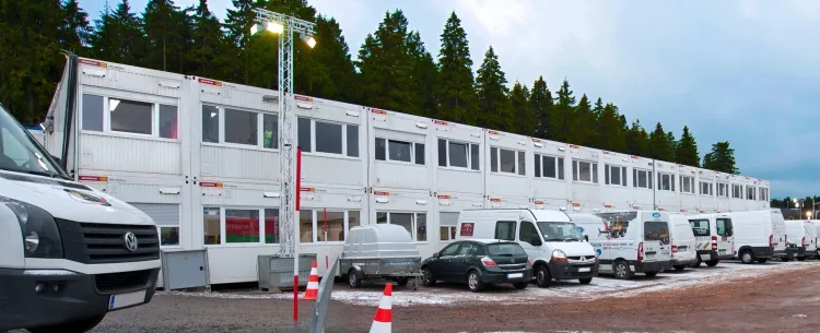 Doch nicht nur für das Teamareal setzte der Veranstalter auf Systembau, auch weitere Teile der temporären Infrastruktur wurden mittels Raumzellen verwirklicht. So stellte Zeppelin Rental unter anderem Aufenthaltscontainer für das Rote Kreuz und die Bergwacht bereit, Bürocontainer für die Organisatoren und Helfer sowie einen frontverglasten Eventcontainer.