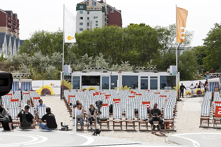 Vom 8. Juni bis 1. Juli präsentierten ZDF-Moderatorin Katrin Müller-Hohenstein und Ex-Torhüter Oliver Kahn am sogenannten Fußballstrand in Heringsdorf 15 EM-Spiele. Die Container von Zeppelin Rental beherbergten dabei unter anderem die Beleuchtungs- und Beschallungstechnik direkt am Strand.