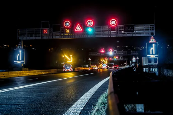 Bereits im Vorfeld der Baumaßnahme hatte die Luther HL GmbH & Co. KG, eine Tochtergesellschaft von Zeppelin Rental, in einer Arbeitsgemeinschaft eine mobile Stauwarnanlage mit LED-Wechselverkehrszeichen sowie eine Reisezeitanzeige für die Verkehrsteilnehmer*innen installiert.