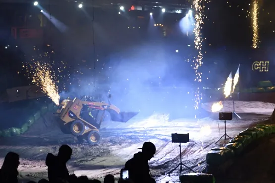 In den Pausen beeindruckte zudem ein spektakuläres Rahmenprogramm. Ein Vorführer der Abteilung „Projekt- und Einsatztechnik“ der Zeppelin Baumaschinen GmbH um Leiter Uwe Wieduwilt ließ einen Funken sprühenden Kompaktlader zur Lasershow der LEC GmbH tanzen...