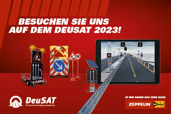 Ob auf innerstädtischen Baustellen, bei Straßenbauarbeiten an Autobahnen, Land- und Bundesstraßen, bei Projekten auf einem Werksgelände oder für den Eventbereich – die Experten für Baustellen- und Verkehrssicherung von Zeppelin Rental verfügen über das erforderliche Know-how und die benötigte Technik. Und zwar deutschlandweit. Neben der Baustellensicherung übernehmen sie auch die Verkehrsplanung und -sicherung oder setzen Telematiklösungen um. Auf dem diesjährigen DeuSAT stehen die innovativen Systeme zur Wechselverkehrsführung und Fahrzeugdifferenzierung im Mittelpunkt.