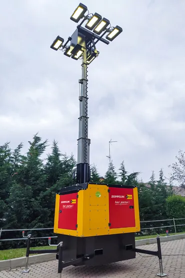 Auch bei den neu zugeführten Baumaschinen setzt Zeppelin Rental auf Nachhaltigkeit. Alle können eine Motorentechnik der neuesten Abgasstufe (Stage V) vorweisen oder sind mit Hybrid- oder Elektroantrieben ausgestattet. Gleiches gilt für zahlreiche Baugeräte wie Kompressoren, Häcksler oder Flutlichtanlagen. So auch das emissionsfreie LED-Lichtmastsystem Boxlight BL 9008 von Bruno Generators Group, das ohne eigenen Motor oder Generator betrieben wird. Der Betrieb erfolgt über das öffentliche Netz oder mittels mobiler Stromerzeuger, bei denen Zeppelin Rental ebenfalls in emissionsarme Modelle investiert. Eine nachhaltige Energieversorgung ist so auch auf der Baustelle möglich.