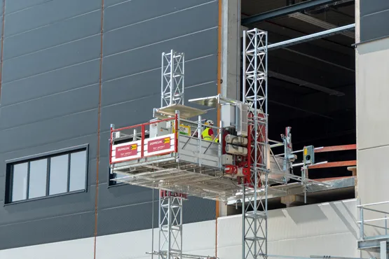 Neben der Vermietung der Technik bietet Zeppelin Rental das komplette Leistungsspektrum für den sicheren Betrieb von Aufzügen an. Dies beginnt bei einer kompetenten Einsatzberatung und der Prüfung der Gegebenheiten vor Ort hinsichtlich Anlieferung, Aufstellung und Betrieb des Aufzugs. Dazu kommen die Montage über ein Mastsystem, die professionelle Einweisung in die Bedienung und die Demontage nach Abschluss des Bauvorhabens. Während des laufenden Projekts setzt das Unternehmen bei Bedarf Aufzüge auch um oder stockt Förderhöhen auf oder ab.