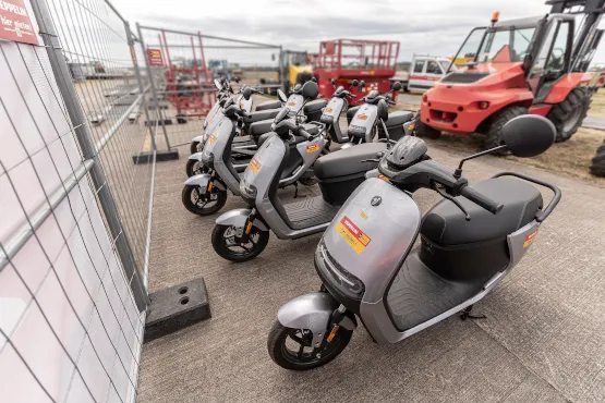 Seit Mai 2022 zählen die E-Roller des Herstellers Segway sowie die E-Scooter des Herstellers Streetbooster Two zum ecoRent-Programm von Zeppelin Rental. „Wir haben uns für diese Modelle entschieden, da beide über Wechselakkus verfügen und der Tausch der Akkus schnell und unkompliziert möglich ist“, betont Hardt. Dank der beiden Akkus bleibt die Mobilität jederzeit gewährleistet, da stets ein geladener Akku zur Verfügung steht. Neben E-Rollern bietet Zeppelin Rental auch Roller mit Verbrennungsmotor an.