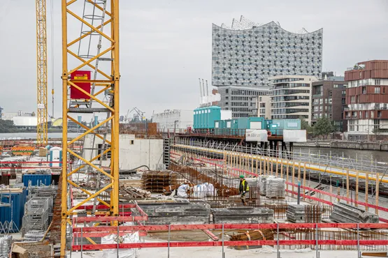 In einem ersten Schritt ging es für Projektmanager Viktor Airich und das Team am Standort Hamburg-Wilhelmsburg an die Ermittlung des erforderlichen Energiebedarfs, um die Elektro-Baustelleneinrichtung optimal dimensionieren zu können. Während die Hauptverbraucher derzeit vor allem die Kräne sind, wird der Strombedarf mit dem Baufortschritt stetig steigen.