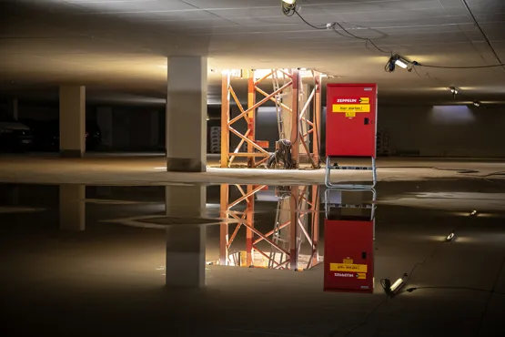 Für die richtige Dimensionierung der Baustrominfrastruktur wird vorab die Leistungsaufnahme aller Verbraucher über die einzelnen Bauphasen hinweg ermittelt. Darauf aufbauend werden die Leitungen bemessen und Kabelführung sowie Verteilerstandorte so geplant, dass sichere und hindernisfreie Wege stets gewährleistet sind. Die erforderlichen elektrischen Betriebsmittel von der Trafostation über die Baustromverteiler bis zur Beleuchtung stellt Zeppelin Rental auf Mietbasis zur Verfügung. Geschultes Elektrofachpersonal kümmert sich um Montage und Wartung sowie die Anpassung der Baustrominfrastruktur an den Baufortschritt.