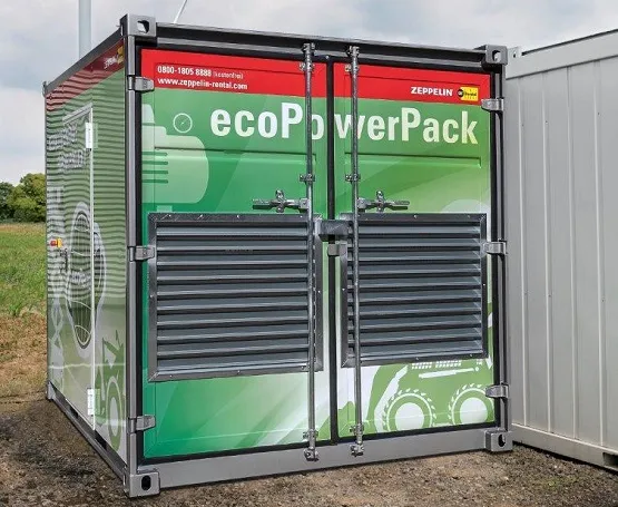 In einem von Zeppelin Rental konzipierten zehn Fuß Technikcontainer befinden sich ein Stromspeicher, ein Stromaggregat sowie die dazugehörige Steuerungselektronik und Verbindungsverkabelung. In Kombination sorgen die Batterie und das Stromaggregat für eine nachhaltige und unabhängige Energieversorgung: Der Stromspeicher gibt den vom Aggregat erzeugten Strom nach Bedarf in der benötigten Menge an die Verbraucher ab.