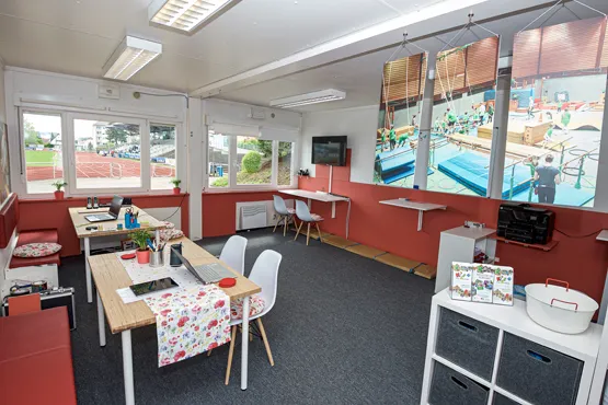 Der Zeppelin Konzern unterstützt die Kindersportschule (KiSS) des VfB Friedrichshafen mit einer Duo-Anlage aus Raumsystemen. Sie dient als Büro und Treffpunkt für Kinder, Eltern, Trainer und Verantwortliche.
