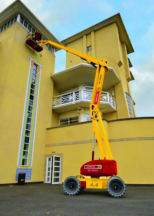 Die liefert auch eine weitere Neuheit im Zeppelin-Rental-Mietprogramm: die Hybrid-Gelenk-Teleskopbühnen ZGT21.12H und ZGT17.9H. Der Bediener kann zwischen einem rein elektrischen und einem Dieselantrieb wählen. Entscheidet er sich für letzteren, unterstützt der Elektromotor bei hohen Leistungsanforderungen wie beispielsweise dem Befahren einer starken Steigung automatisch den Dieselmotor oder speist mit der überschüssigen Energie die Batterien. Damit lässt sich eine Kraftstoffeinsparung von bis zu 50 Prozent im Vergleich zu ähnlichen Arbeitsbühnenmodellen erzielen. Ein fortschrittliches Abgasreinigungssystem verringert zudem Karbonmonoxid-, Kohlenwasserstoff-, Rußpartikel- und Geräuschemissionen.