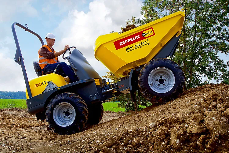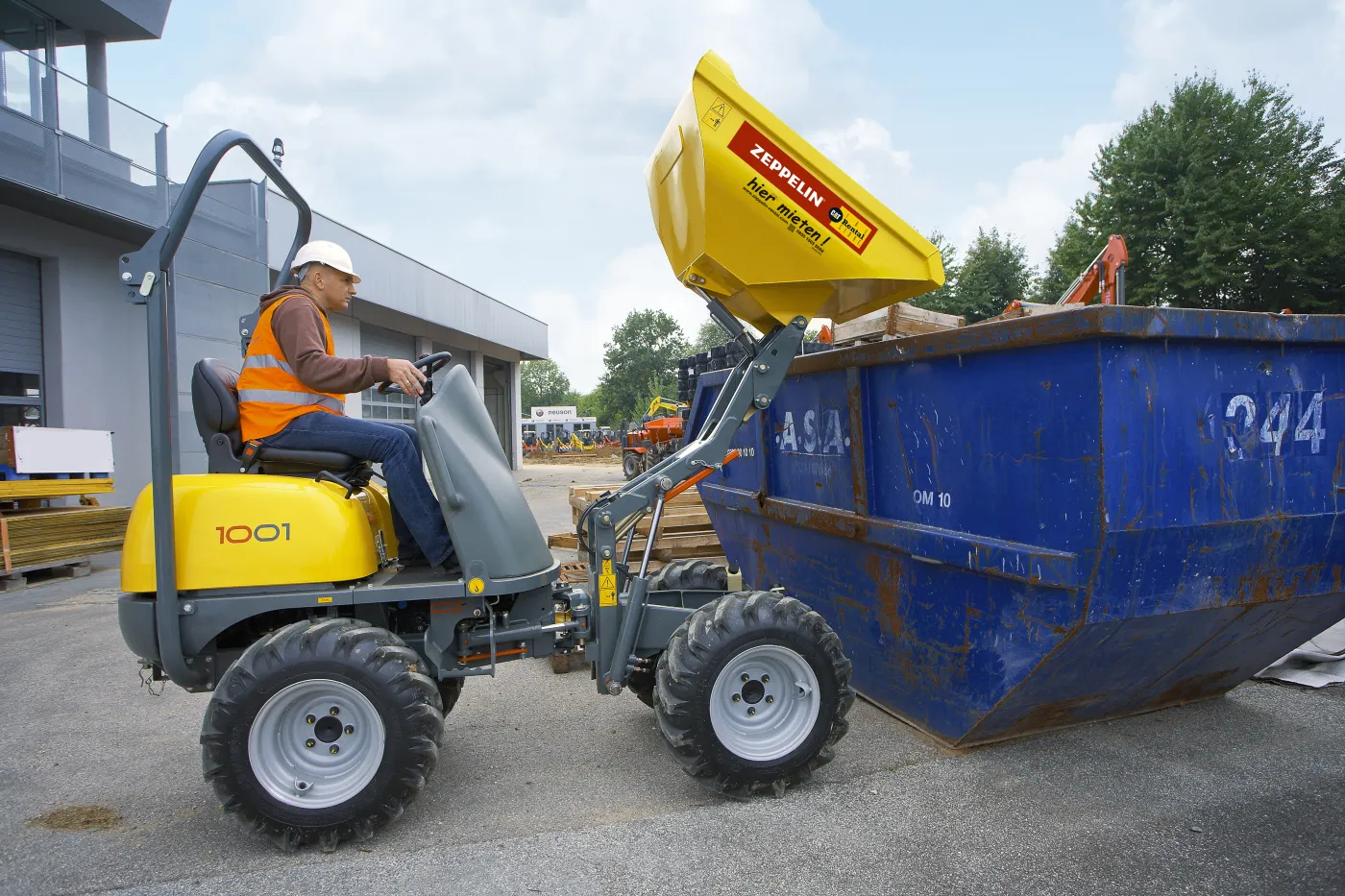 Die Geräte 1501 und 2001 DK mit Nutzlasten von 1500 bis 2000 Kilogramm zeichnen sich durch ihre hervorragende Geländegängigkeit, eine extreme Steigfähigkeit von bis zu 45 % und eine kompakte Bauweise aus. Ihre Muldenkapazität liegt bei 800 bzw. 1210 Litern (gehäuft), wodurch sie einen schnellen und sicheren Materialtransport gewährleisten. Den Raddumper 1001 HK hat Zeppelin Rental Österreich nun mit extra schmaler Bereifung im Mietprogramm, wodurch er besonders wendig ist und sich auch für den Einsatz im Inneren eignet.